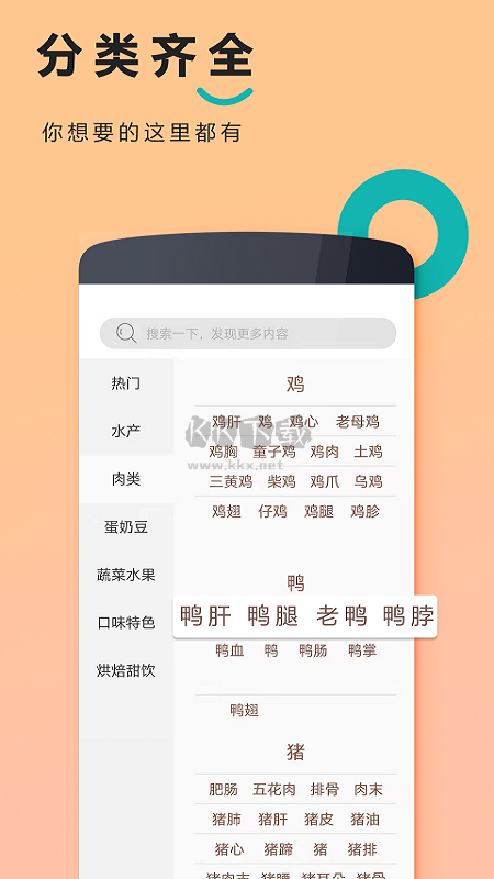 4、分類多樣化,讓用戶在使用app時(shí)能夠精準(zhǔn)、快速查找感興趣的美食菜譜;