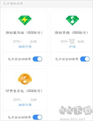 4、可以看到目前所有的自動續(xù)費服務開關按鈕都是打開狀態(tài),我們要一個個的點擊(關閉)這些服務即可。