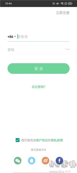 2、用戶可以通過輸入手機號和密碼登錄,也可以通過微信賬號、QQ、微博、Facebook賬號進行登錄。
