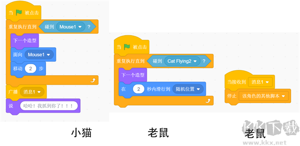 2、分別選擇小貓和老鼠的編程代碼。