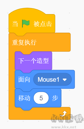 切記,小貓編程代碼中的移動(dòng)步數(shù)必須比老鼠的移動(dòng)步數(shù)少,不然老鼠很容易被小貓追上。