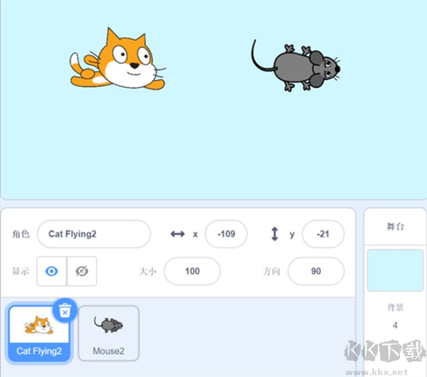 1、設(shè)置好小貓和老鼠角色,并設(shè)置好背景圖。