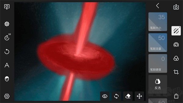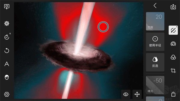 利用筆刷功能,可以手動繪制調(diào)整區(qū)域,所有的調(diào)整只會影響到這些區(qū)域。當(dāng)選中筆刷工具之后,可以使用手指繪制一個區(qū)域,在繪制過程中,會有一個紅色的區(qū)域出現(xiàn),這些區(qū)域就表示被選中的區(qū)域。