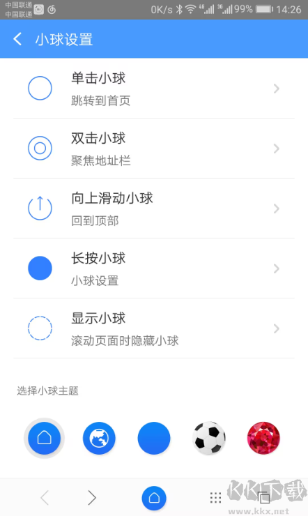 3、更貼心的操作通過小球快速完成幾項(xiàng)常用操作,支持頁(yè)面滑動(dòng)手勢(shì)。