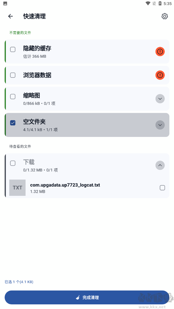 2、用戶可以勾選自己想要清理的文件,點(diǎn)擊下方的【完成清理】;
