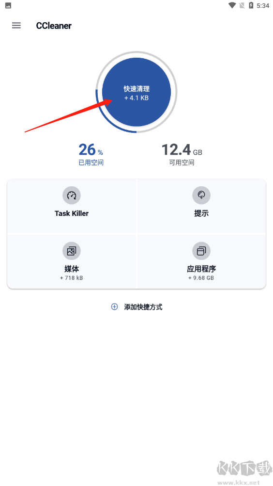 1、首先打開app后,點(diǎn)擊【快速清理】;