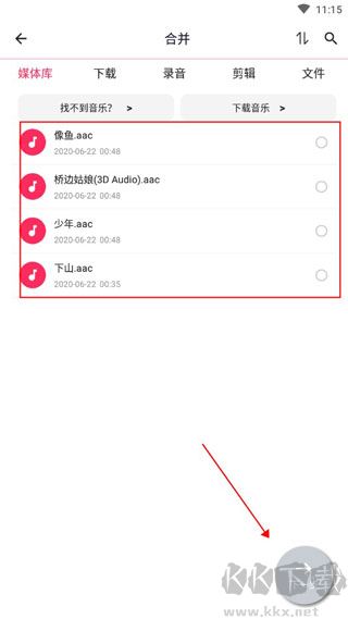 2、選擇你想要合并的歌曲。完成后點擊下一步。
