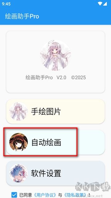 1、先在本站下載最新版本的軟件,安裝好后點自動繪畫。