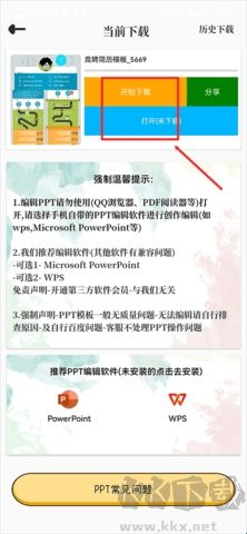 4、最后點(diǎn)擊開始下載,下載完成后再點(diǎn)擊打開按鍵即可使用ppt。