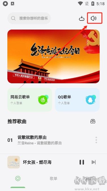 1、打開軟件主頁點擊搜索框或者推薦的歌曲