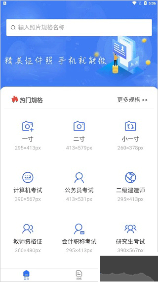 選擇需要制作的證件照的規(guī)格尺寸