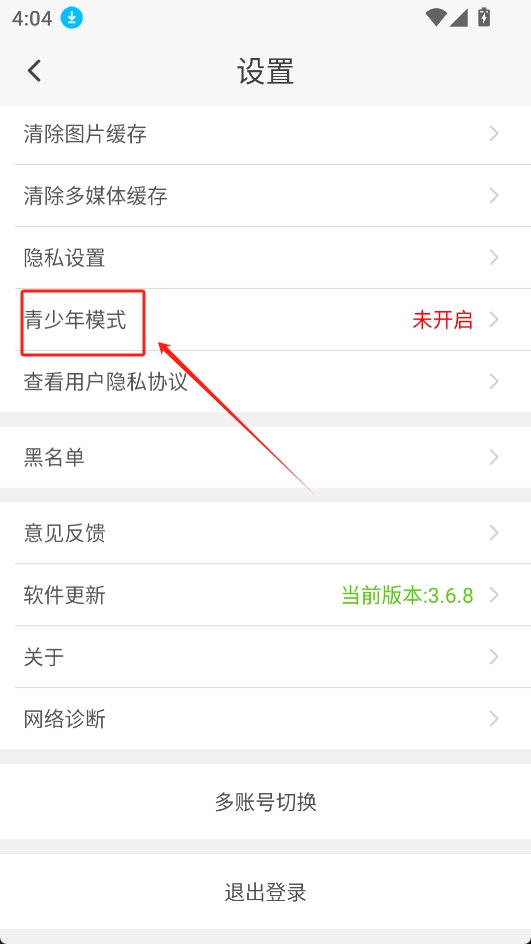 3.下滑找到青少年模式,點(diǎn)擊進(jìn)入