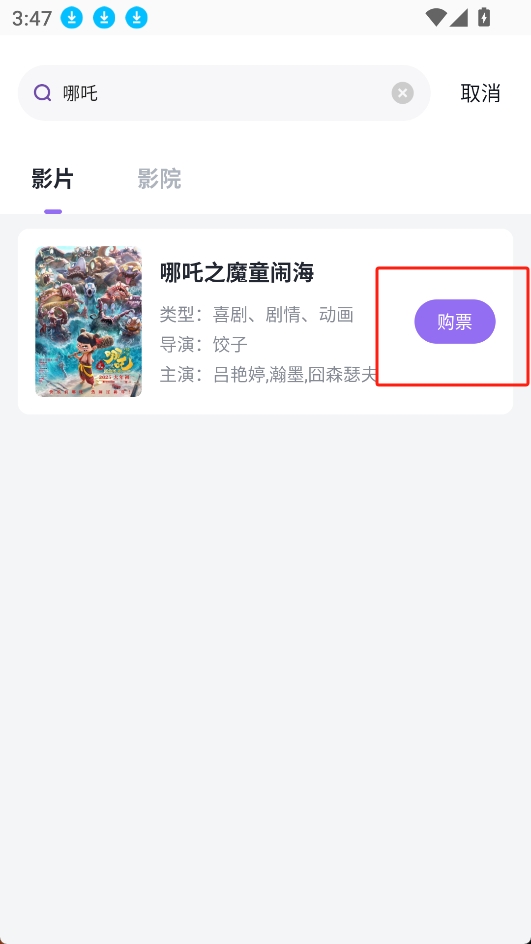 2.搜索完成后選中你想要觀看的影片,點擊右邊的“購票”;