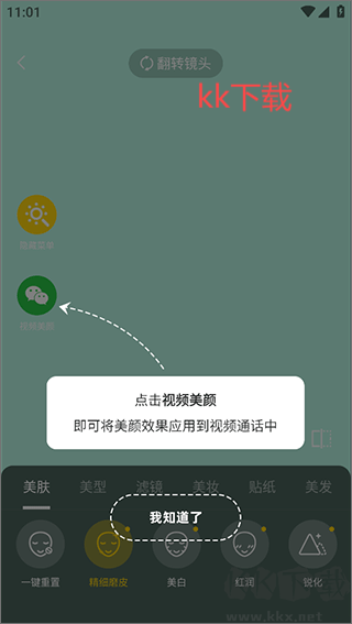 3、當(dāng)個(gè)人確認(rèn)調(diào)節(jié)完畢后,即可點(diǎn)擊視頻美顏功能,將美顏效果應(yīng)用于視頻通話之中。