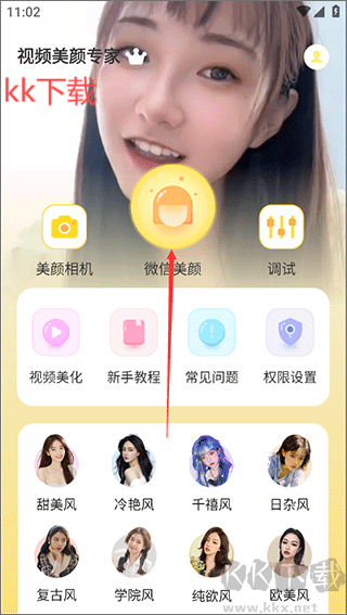 1、首先,請(qǐng)通過本站下載并安裝視頻美顏專家手機(jī)版。于軟件首頁尋找到 “微信美顏” 功能選項(xiàng),點(diǎn)擊進(jìn)入該功能模塊 ;