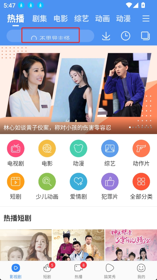 1.打開軟件,在軟件主頁搜索框搜索想要看的視頻,如圖所示;