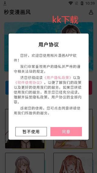 1、請下載由本站所提供的照片漫畫化應(yīng)用程序。在首次使用該應(yīng)用程序時,需仔細閱讀用戶協(xié)議并予以同意;