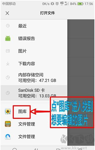 2、在此時(shí)間節(jié)點(diǎn),請(qǐng)點(diǎn)擊 “圖庫(kù)”,進(jìn)入待編輯圖片所在的文件夾;