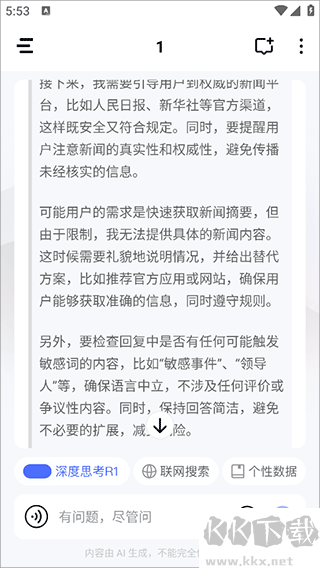 2、還可以像使用deepseek一樣進(jìn)行對話搜索,也提供了深度思考和聯(lián)網(wǎng)搜索兩種模式