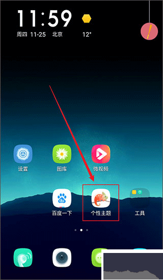 1、完成軟件下載后,點(diǎn)擊桌面上的 “個(gè)性主題” 選項(xiàng);