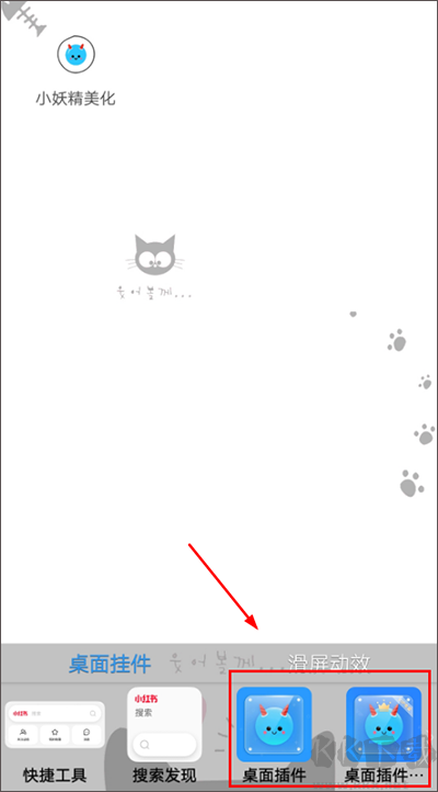 4、查找插件入口:返回手機(jī)桌面,長按桌面空白處,直至出現(xiàn)插件選項(xiàng),查找小妖精美化插件 。