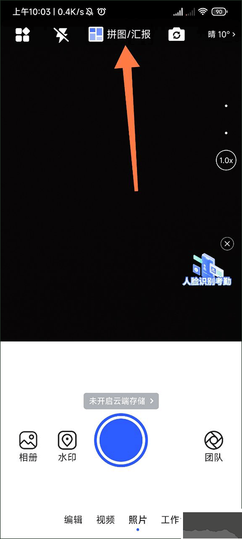 1、打開功能入口:進(jìn)入馬克相機,點擊頂部【拼圖 / 匯報】按鈕,開啟制作流程。