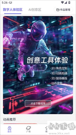 1、進入app后即可下載相關組件起先ai數字人定制操作,讓你的動畫中的ai數字人更符合你的想象