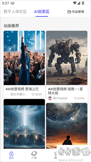 2、ai創(chuàng)意區(qū)每天有大量更新的ai動畫資源供你免費觀看使用,讓你從中捕獲靈感
