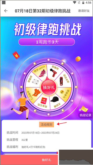 3、頁面跳轉(zhuǎn)之后就顯示挑戰(zhàn)的規(guī)則和福利,挑戰(zhàn)成功后就可以抽好禮。