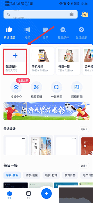 第五步:若是想要自定義模板,可以在首頁中點擊創(chuàng)建設計,然后自定義尺寸后點擊創(chuàng)建即可設計自己喜歡模板