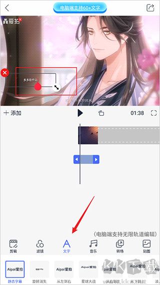 7、點擊【文字】,可以給視頻添加字幕效果;