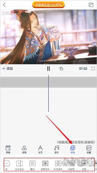 9、點擊【轉場】,可以對多個視頻之間進行轉換操作;