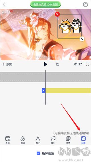 10、點擊【貼圖】,可以在視頻中添加各種有趣的貼圖;