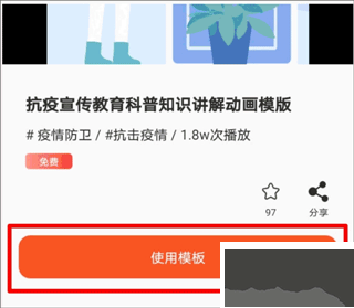 2、選擇想要的模板后可以看到預(yù)覽界面,點(diǎn)擊【使用模板】即可進(jìn)入編輯器做視頻啦
