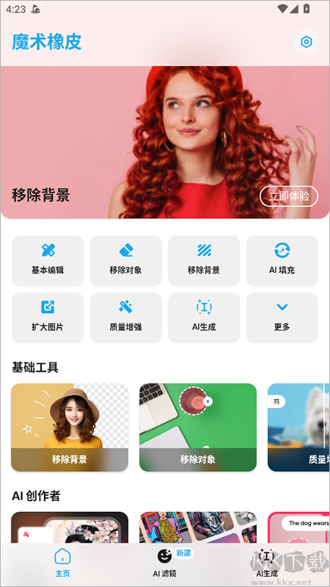 魔術(shù)橡皮app是一款強(qiáng)大的圖片處理軟件,擁有深度學(xué)習(xí)算法,給用戶帶來高效還精準(zhǔn)的圖片處理體驗(yàn)。它的界面簡(jiǎn)單大氣,支持多種實(shí)用功能,有基本編輯、移除背景、擴(kuò)大圖片、質(zhì)量增強(qiáng)、AI濾鏡等功能。用戶可以從照片中移除自己不需要的人、物、文字、標(biāo)志或者水印,操作也非常的簡(jiǎn)單,就算是新手,也可以很快上手,喜歡的朋友快來下載試試吧!
