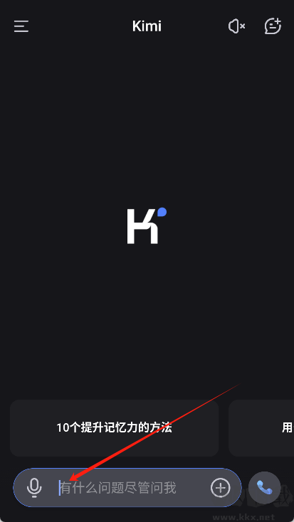2. 也能點(diǎn)選右側(cè)的通話符號(hào)和Kimi語(yǔ)音溝通,同它閑聊或發(fā)出各類詢問(wèn)。