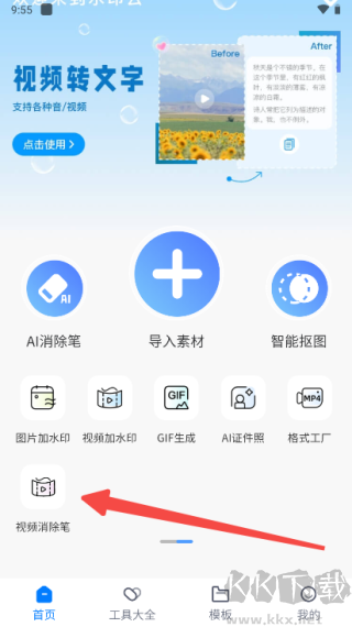 1、進(jìn)入水印云App,找到視頻消除筆;