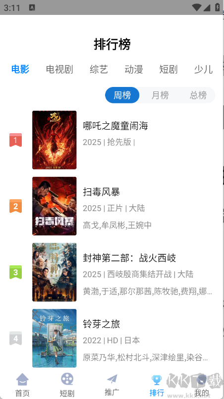 2、在熱門榜頁面能依據(jù)當(dāng)前流行度查閱排序后的影視作品。