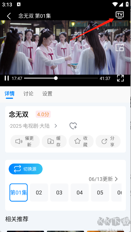 5、在播放頁的右上方點選“TV”標識,開始掃描裝置。