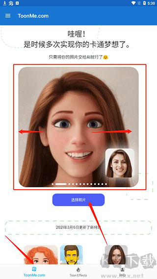 1、在toonme.com界面左右滑動(dòng)選取心儀的畫(huà)面效果。