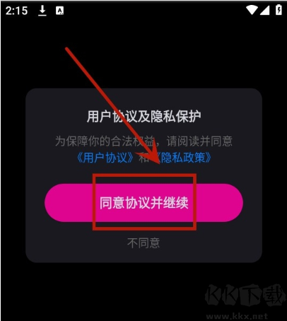2、啟動(dòng)應(yīng)用,輕按“同意協(xié)議并繼續(xù)”按鍵。