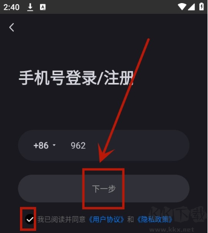 5、填入號(hào)碼并選中服務(wù)條款,點(diǎn)選下一步即可開啟后續(xù)情節(jié)。