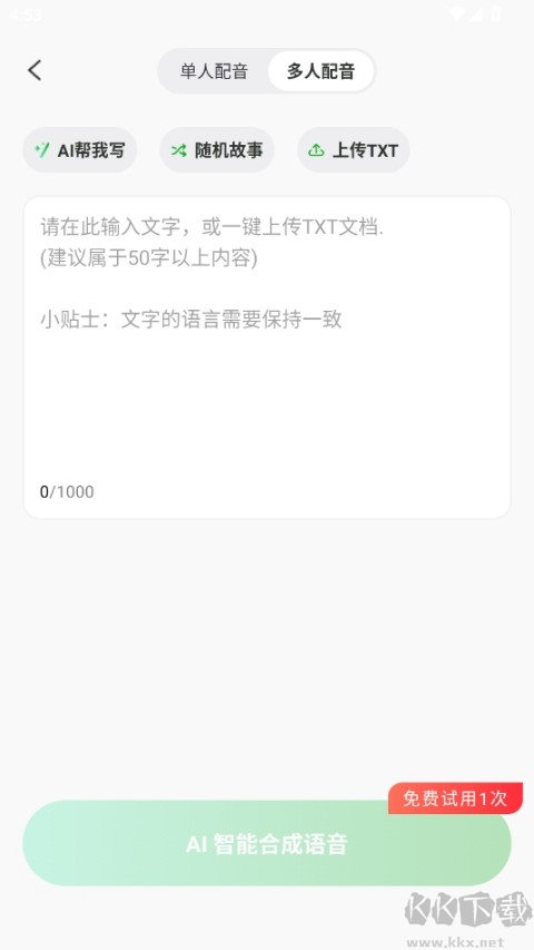 1、智能文字轉(zhuǎn)語(yǔ)音:支持多語(yǔ)種轉(zhuǎn)換與播報(bào),提供多樣音色選擇。
