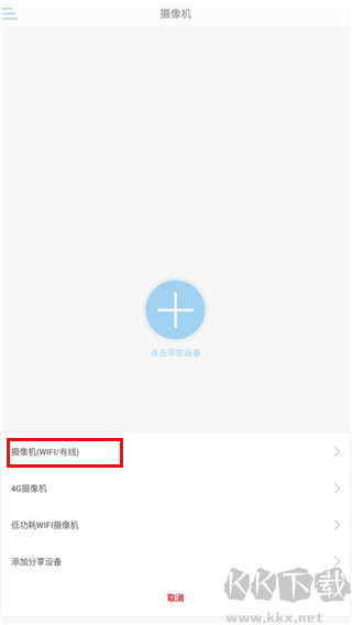 4、在設備列表中點擊“攝像機(WIFI/有線)”選項;