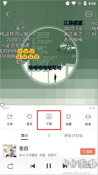 1、首先選擇想要保存的音頻,進(jìn)入播放頁(yè)后點(diǎn)擊“下載”按鈕;