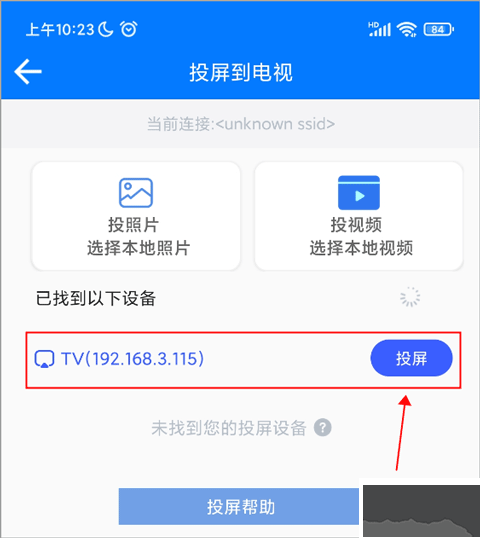 4、在投屏界面等待手機(jī)搜索電視設(shè)備,點(diǎn)擊識(shí)別到的設(shè)備即可完成投屏