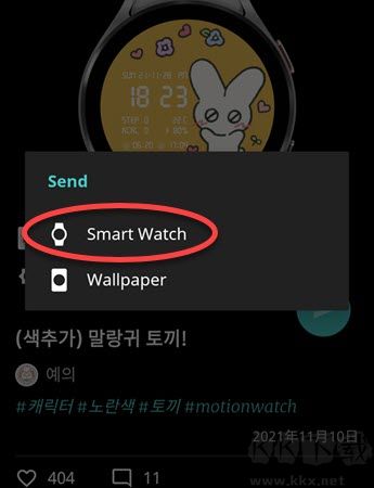 4、挑選“智能腕表”,也就是發(fā)送到你的移動(dòng)終端,別忘了將你的表面設(shè)定為timeflik的表面。