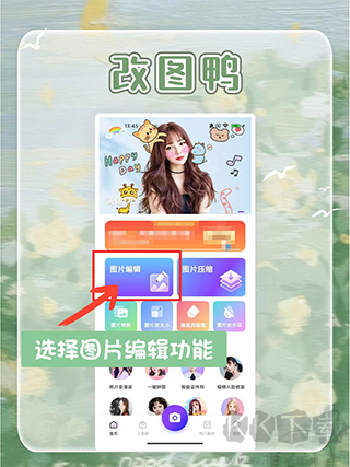1、打開改圖鴨Pro應(yīng)用,在首頁選擇“圖片編輯”服務(wù);