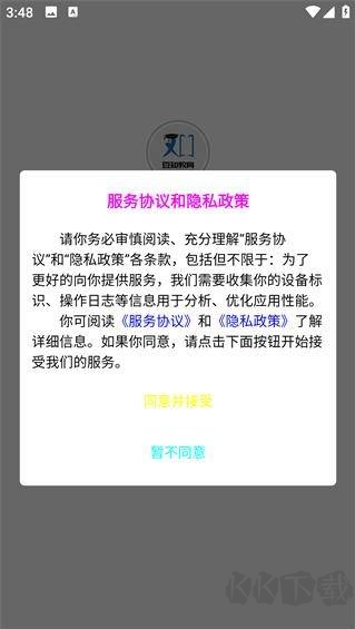 1、打開(kāi)應(yīng)用,閱讀用戶協(xié)議后點(diǎn)擊同意并繼續(xù);