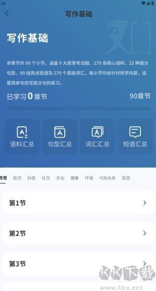 4、寫作基礎(chǔ)模塊提供語(yǔ)法、句型等學(xué)習(xí)內(nèi)容,適合基礎(chǔ)較弱的用戶。